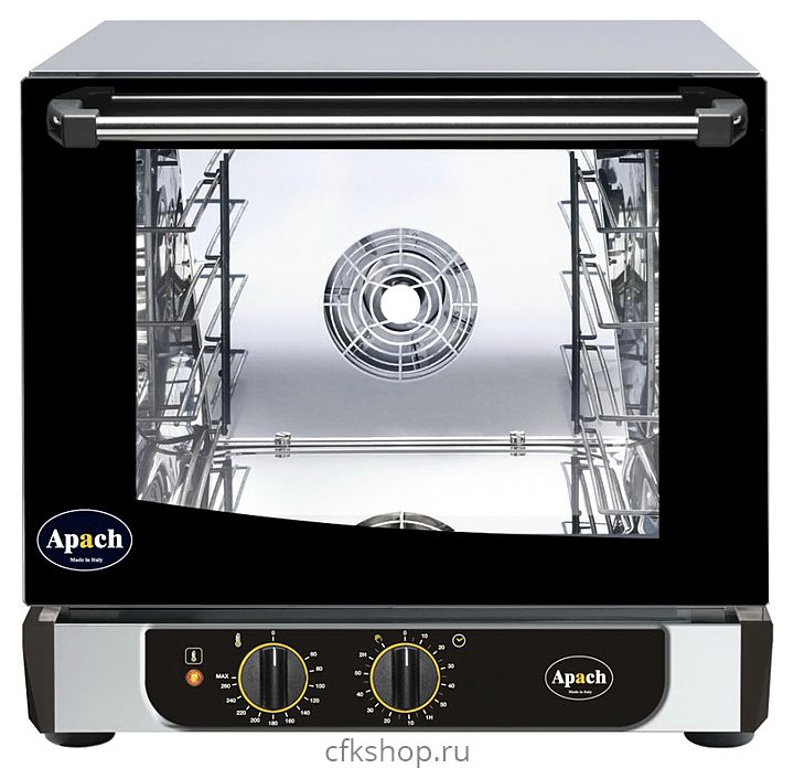 Конвекционная печь Apach AD44M ECO предназначена для выпекания или разогрева кондитерских и хлебобулочных изделий, различных блюд, замороженных или предварительно выдержанных в расстоечном шкафу заготовок из теста на предприятиях общественного питания и торговли. Подсветка камеры осуществляется галогеновой лампой. Корпус выполнен из нержавеющей стали, дверца - из двойного закаленного стекла.
