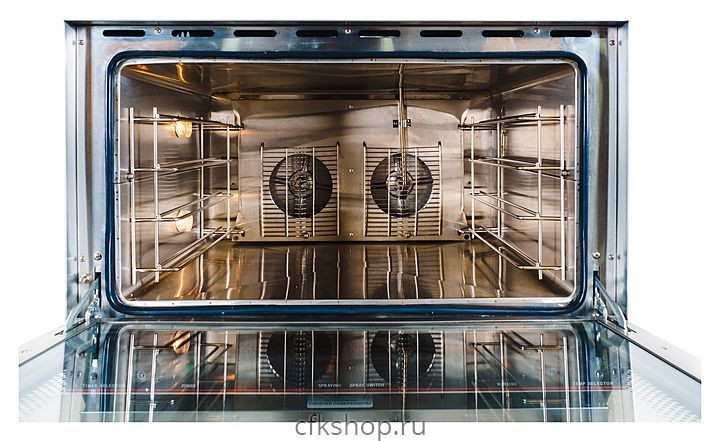 - Высокая мощность печи и автоматическая система принудительной реверсивной циркуляции воздуха обеспечивают производительное и равномерное выпекание