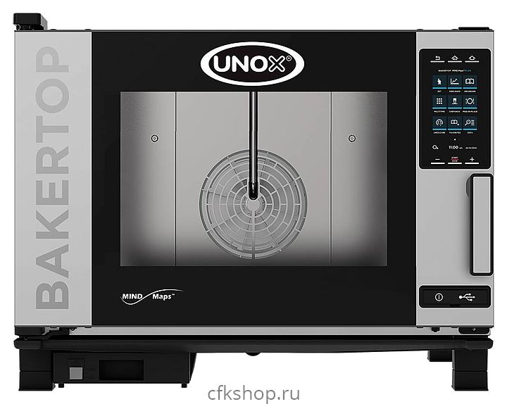 Конвекционная печь UNOX XEBC-04EU-EPR серии BakerTop MIND.Maps предназначена для приготовления различных блюд, выпечки хлебобулочных и кондитерских изделий на предприятиях общественного питания и торговли, в пекарнях и кондитерских. Модель оснащена подсветкой посредством внешней LED-лампы и C-образными с зубчатыми нишами направляющими. Внутреннее открывающееся стекло облегчают чистку и обеспечивают максимальную гигиену. Камера с закругленными углами выполнена из нержавеющей стали AISI 304, направляющие - из профилированной стали, дверной замок - из высокопрочного самосмазывающегося технополимера, внутренний штифт дверной ручки - из углеродного волокна.