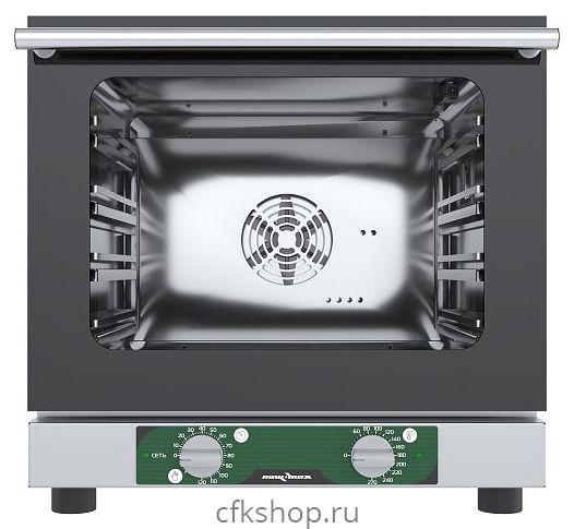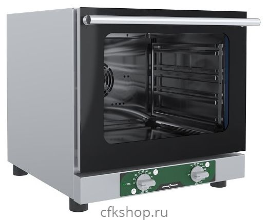 Конвекционная печь Пищевые технологии ПК-4-440/325 предназначена для выпечки хлебобулочных и кондитерских изделий, приготовления и разогрева блюд из мяса, рыбы и овощей на предприятиях общественного питания и торговли. Модель оснащена ручным таймером и дверью с двойным остеклением. Жарочная камера изолирована слоем теплоизоляции.