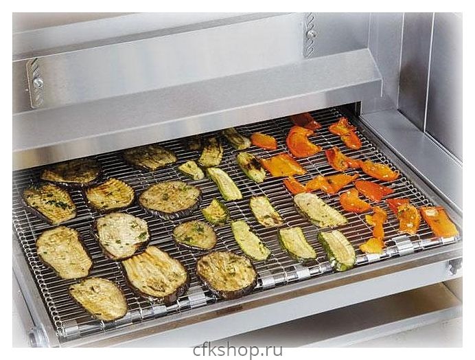 Агрегат является частью первой линии запатентованных вентилируемых конвейерных печей. Устройство очень просто и удобно в использовании: достаточно подготовить продукты, установить необходимую температуру приготовления и задать скорость движения конвейера при помощи цифровой панели управления и поместить продукты на конвейерную ленту. Оператору не потребуется тратить время на контроль процесса приготовления - печь сама позаботится об этом, предотвратив подгорание помещенных в нее блюд. Конструкция прибора позволяет устанавливать печи друг на друга, тем самым экономя пространство кухни и делая его более функциональным.