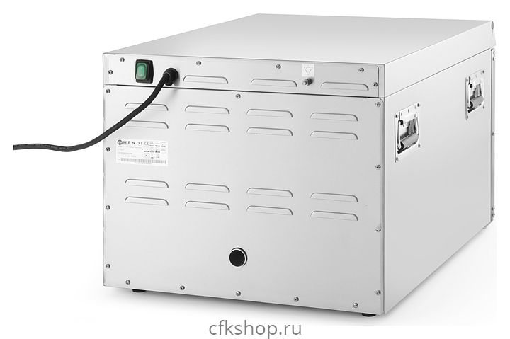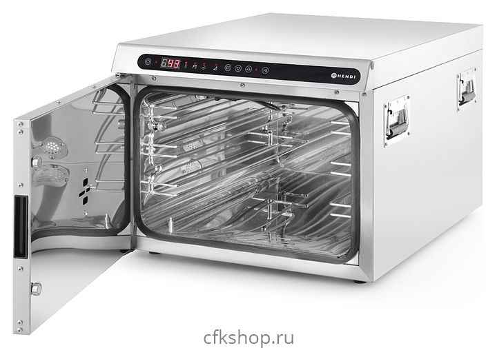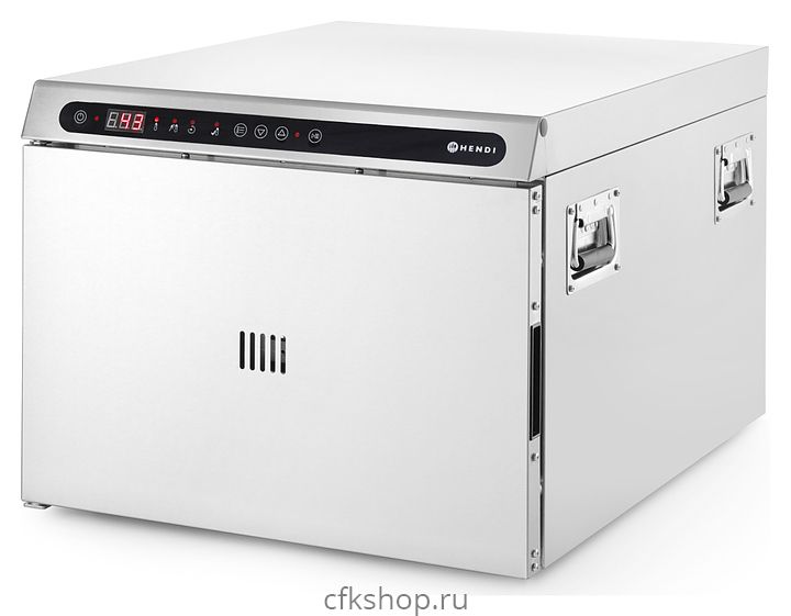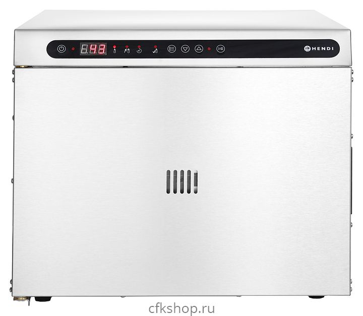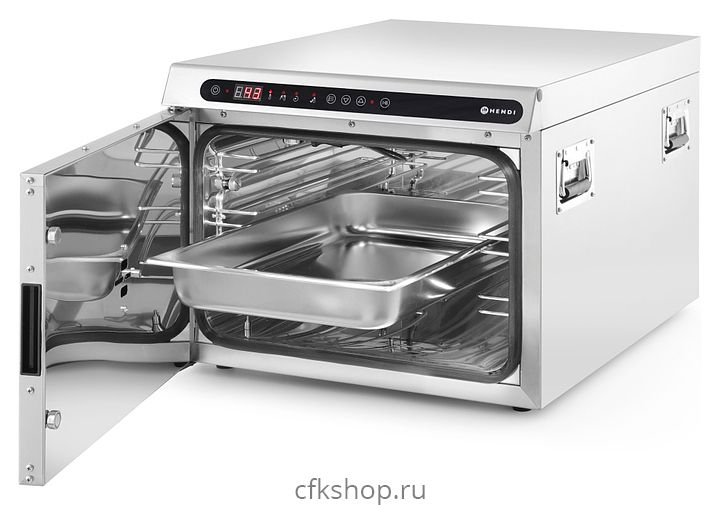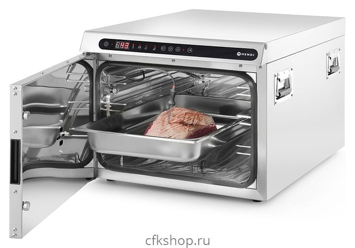 Печь низкотемпературного приготовления HENDI 225479 предназначена для деликатного приготовления и разогревания продуктов с помощью точно устанавливаемого и контролируемого процесса на предприятиях общественного питания и торговли. Модель оснащена трехуровневыми направляющими, температурным зондом, цифровой панелью управления с возможностью просмотра времени и установки температуры зонда / камеры, таймером и ручками по бокам. Камера выполнена из цельного куска листового метала и имеет скругленные края для легкой очистки изделия.