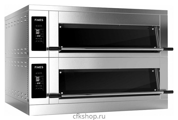 Подовая печь Fines FD86H1/2-D2 Digital серии FIN-DEKO предназначена для выпекания хлебобулочных и кондитерских изделий на предприятиях пищевой промышленности, общественного питания и торговли. Модель оснащена 2 рабочими камерами, трубчатыми электронагревателями (ТЭНами), откиднами дверьми с горизонтальными рукоятками, сенсорными панелями управления с жидкокристаллическими цифровыми дисплеями индикации. Корпус и облицовка камер выполнены из стойкой к коррозии нержавеющей стали марок 304 и 430, ТЭНы – из нержавеющей стали, поды – из огнеупорного кирпича, остекление – из закаленного стекла с антибликовой наружной поверхностью, изоляция – из толстого слоя керамики и каменной ваты.