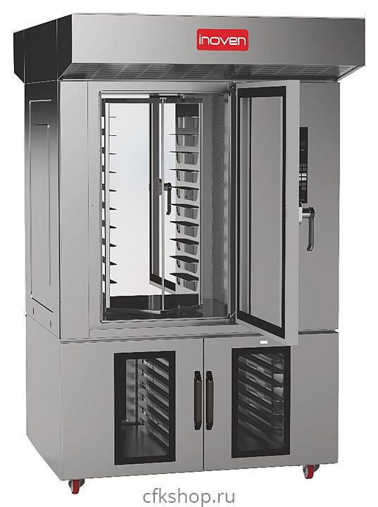 Ротационная конвекционная печь Inoven AYF - DUAL используется на предприятиях пищевой промышленности и в пекарнях для выпечки хлебобулочных и мучных кондитерских изделий. Модель оснащена 2 дверями, расстоечным шкафом, системой вращения, панелью управления, защитой от колебаний напряжения, высококачественной теплоизоляцией.