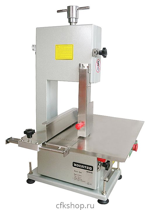 Настольная пила для мяса Kocateq JG1650E используется на предприятиях общественного питания и торговли для распиловки замороженного и свежего мяса и костей на куски. Корпус выполнен из эмалированной нержавеющей стали, детали, контактирующие с продуктом, - из нержавеющей стали AISI 202.