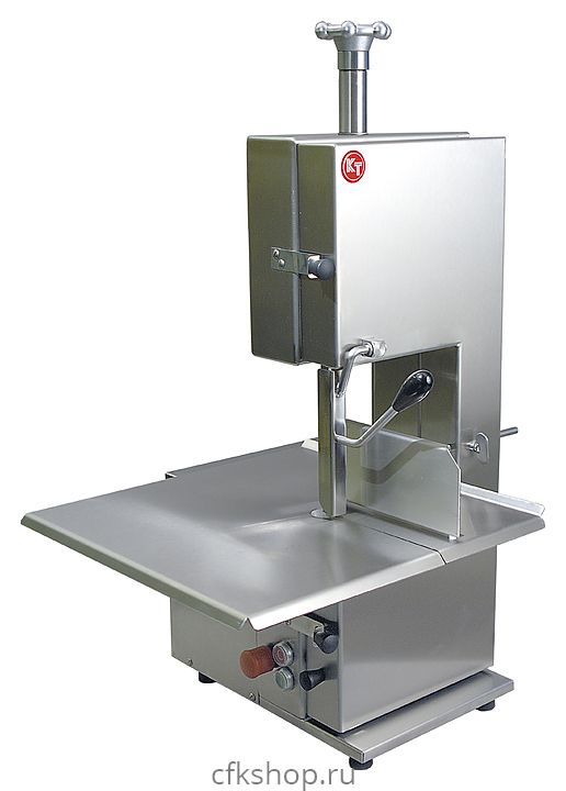 Пила для мяса Koneteollisuus Oy (KT) 210 используется на предприятиях пищевой промышленности и торговли для нарезки на куски свежего и замороженного мяса, рыбы и птицы. Модель с 1 скоростью оснащена неподвижным столом, эргономичным рычагом-толкателем и тормозным двигателем, благодаря которому режущее полотно останавливается мгновенно после отключения электропитания. Конструкция выполнена из нержавеющей стали.