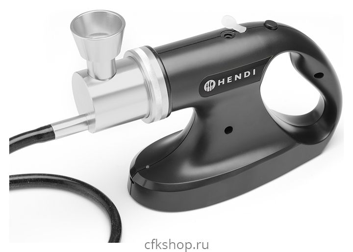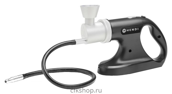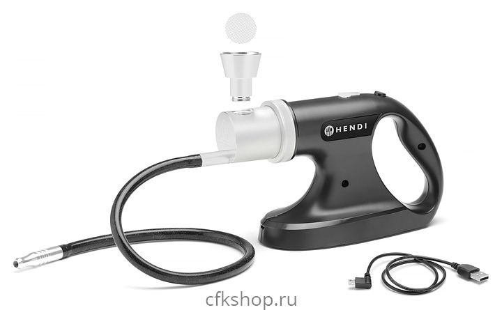 Коптильный пистолет HENDI 199640 предназначен для окуривания холодным и ароматным дымом мяса, морепродуктов, салатов, овощей, закусок, десертов, маринадов, соусов, супов, коктейлей и других продуктов и напитков любой плотности и консистенции на предприятиях общественного питания и торговли, а также в домашних условиях. Модель оснащена съемным сетчатым фильтром и удобной ручкой для простого использования одной рукой. Корпус выполнен из ABS-пластика, камера вентилятора - из алюминия.