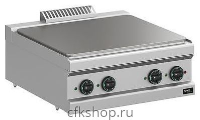 Электрическая плита Apach APRES-77T/PL 700-й серии предназначена для приготовления различных блюд из мяса, птицы, рыбы и овощей в наплитной посуде на предприятиях общественного питания и торговли. Модель оснащена электромеханической панелью управления. Температура рабочей поверхности в центре достигает 450 °C и уменьшается к краям до 200 °C. Корпус, рабочая поверхность, панель управления и вытяжная решетка выполнены из нержавеющей стали AISI 304, боковые и задняя панели - из нержавеющей стали AISI 430, жарочная поверхность - из конструкционной стали.