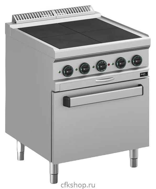 Электрическая плита Apach APRE-77QFEK/PL 700-й серии предназначена для приготовления различных блюд из мяса, птицы, рыбы и овощей в наплитной посуде на предприятиях общественного питания и торговли. Модель оснащена электромеханической панелью управления, быстро нагревающимися конфорками, гидроизолированной прессованной поверхностью и регулируемыми по высоте ножками. Корпус, рабочая поверхность, панель управления и вытяжная решетка выполнены из нержавеющей стали AISI 304, боковые и задняя панели - из нержавеющей стали AISI 430.