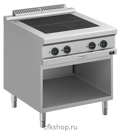 Электрическая плита Apach APRE-89QP/PL 900-й серии предназначена для приготовления различных блюд из мяса, птицы, рыбы и овощей в наплитной посуде на предприятиях общественного питания и торговли. Модель оснащена электромеханической панелью управления, быстро нагревающимися конфорками, гидроизолированной прессованной поверхностью и открытой подставкой с регулируемыми по высоте ножками. Корпус выполнен из нержавеющей стали.