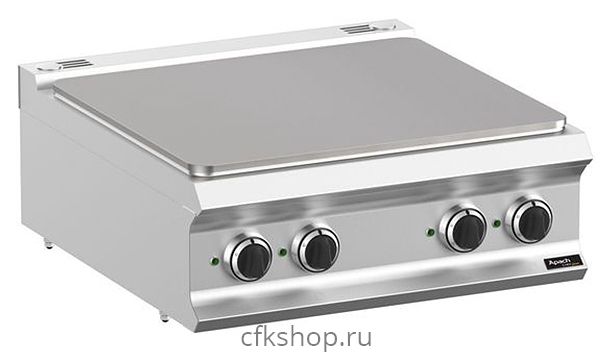 Электрическая плита Apach Chef Line GLRSTE77P предназначена для одновременного приготовления разных блюд в наплитной посуде. Модель оснащена сплошной поверхностью с 4 зонами закрытого концентрического нагрева. Эффект изотермии позволяет дифференцировать температуру приготовления от 450 °С в центре и до 80 °С по краям. Настил выполнен из чугуна, корпус - из нержавеющей стали AISI 304 18/10, которая отличается устойчивостью к образованию коррозии, к влажной среде и резким перепадам температуры, стойкостью к механическим повреждениям и агрессивным средствам.