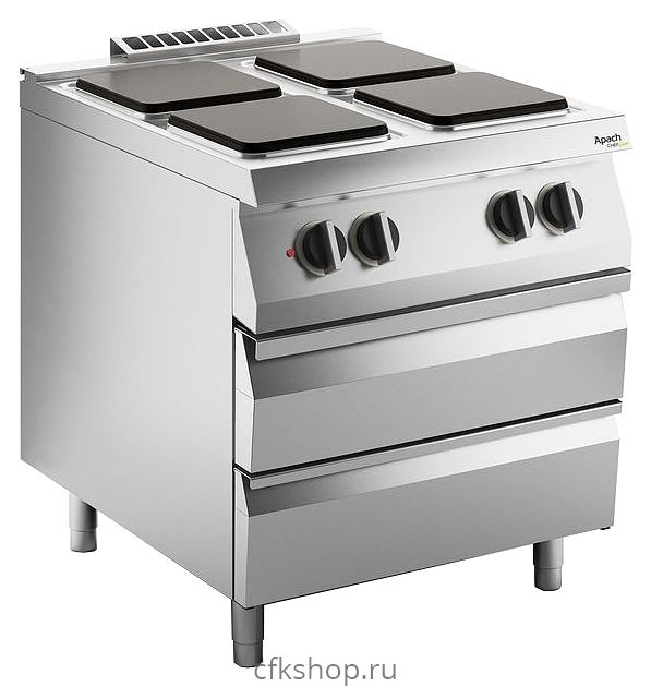 Электрическая плита Apach Chef Line SLRE87DS предназначена для приготовления разных блюд в наплитной посуде. Модель оснащена 4 зонами нагрева. Корпус выполнен из нержавеющей стали AISI 304, которая отличается устойчивостью к образованию коррозии, к влажной среде и резким перепадам температуры, стойкостью к механическим повреждениям и агрессивным средствам.