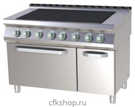 Плита электрическая, 6 зон 6х3.0кВт, поверхность сплошная чугунная, шкаф духовой электрический GN2/1, стенд закрытый, дверь расп
