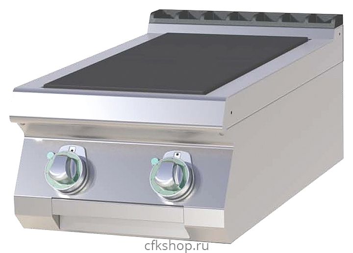 Электрическая плита Azimut SPL 708 E серии 700 предназначена для приготовления первых, вторых, третьих блюд в наплитной посуде на предприятиях общественного питания и торговли. Модель оснащена сплошной поверхностью с 4 плоскими квадратными конфорками. Каждая конфорка имеет независимый 6-позиционный терморегулятор и внутреннюю термическую защиту от перегрева: если конфорка пуста, её нагрев уменьшится автоматически. Корпус изготовлен из нержавеющей стали AISI 304.