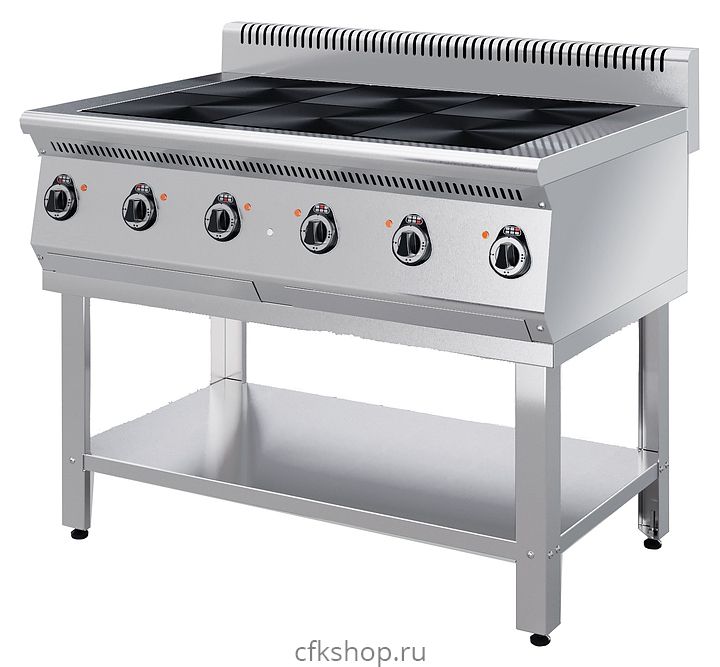 Электрическая плита KAYMAN ПЭ-6-111-МХ предназначена для приготовления первых, вторых и третьих блюд в наплитной посуде на предприятиях общественного питания и торговли. Модель оснащена установленной вровень со столешницей прямоугольной конфоркой и открытой подставкой со сплошной полкой. Корпус выполнен из нержавеющей стали.