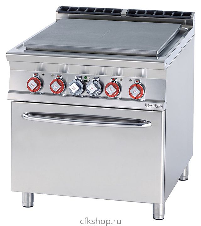 Плита электрическая Lotus TPF-98ET предназначена для приготовления различных блюд в наплитной посуде на предприятиях общественного питания и торговли. Модель оснащена терморегулятором (до 450 °C), световым индикатором, сигнализирующими о включении конфорок, и регулируемыми ножками. В нейтральном шкафу можно хранить посуду, кухонный инвентарь и продукты, не требующие специального температурного режима.