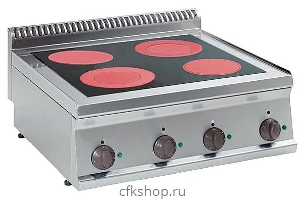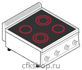 Электрическая плита Tecnoinox PCC70E7 серии Tecno70 предназначена для приготовления первых, вторых, третьих блюд в наплитной посуде на предприятиях общественного питания и торговли. Модель оснащена независимым термостатом для каждой конфорки и дополнительным термостатом для предотвращения перегрева и сокращения потребления энергии. Корпус изготовлен из нержавеющей стали AISI 304, рабочая поверхность - из стеклокерамики. Оборудование может быть расположено на подставке у стены или как центральный остров.