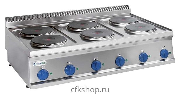 Электрическая плита Tecnoinox PCR105E7 серии Tecno70 предназначена для приготовления первых, вторых, третьих блюд в наплитной посуде на предприятиях общественного питания и торговли. Модель оснащена независимым термостатом для каждой конфорки и дополнительным термостатом для предотвращения перегрева и сокращения потребления энергии. Корпус изготовлен из нержавеющей стали AISI 304. Оборудование может быть расположено на подставке у стены или как центральный остров.