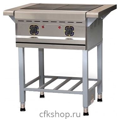 Напольная электрическая плита ONEGA ПЭ-2 Н предназначена для приготовления широкого ассортимента блюд в наплитной посуде в кафе, ресторанах и на других предприятиях общественного питания и торговли. Модель оснащена рабочей поверхностью с 2 варочными зонами, открытой подставкой и фронтальной электромеханической панелью управления. Лицевые элементы корпуса выполнены из нержавеющей стали, задняя стенка – из оцинкованной стали, подставка – из стали с антикоррозийным покрытием, рабочая поверхность – из чугуна.