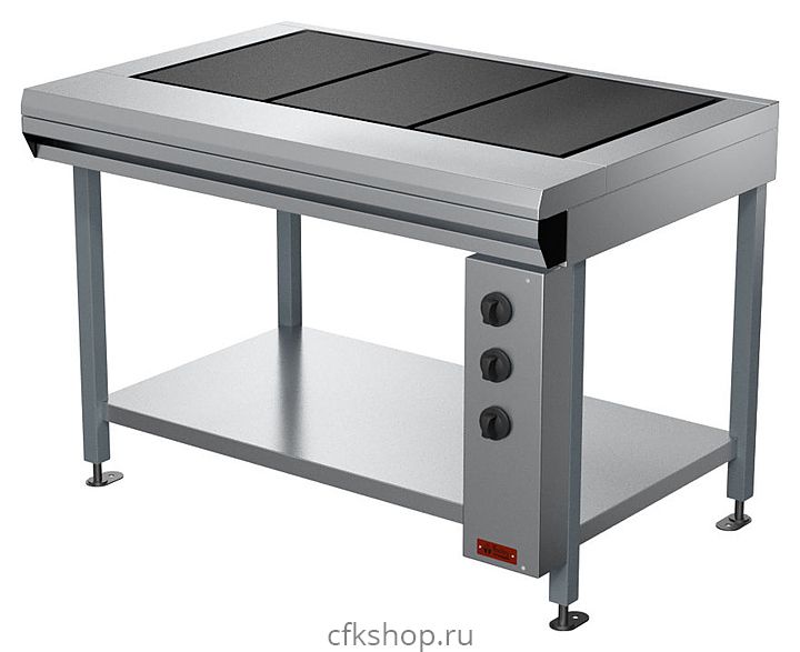 Электрическая плита Проммаш ПЭ-0,51С используется на предприятиях общественного питания и торговли для приготовления первых, вторых и третьих блюд в наплитной посуде, а также для жарки полуфабрикатов из мяса, рыбы, овощей. Модель оснащена инвентарной полкой. Каркас изготовлен из черного металла с полимерным покрытием, рабочая поверхность - из нержавеющей стали.
