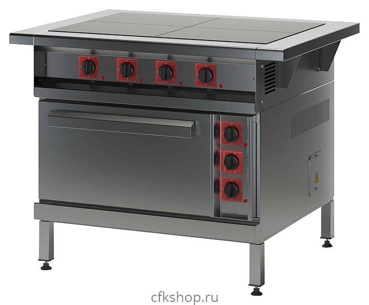Электрическая плита ТММ ПЭТ-4ШЖ предназначена для приготовления различных блюд в наплитной посуде, выпечки хлеба, пиццы, пирогов и печенья в духовом шкафу на предприятиях общественного питания и торговли. Корпус выполнен из черного металла, лицевая панель - из нержавеющей стали.