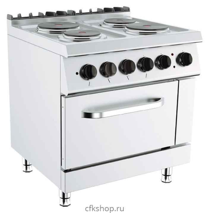 Электрическая плита Вулкан Лайт VP78942E-OV используется на предприятиях общественного питания и торговли отдельно или в составе тепловой линии Лайт 700 для приготовления широкого спектра блюд в наплитной посуде. Модель оснащена 4 варочными конфорками со ступенчатым контролем температуры, духовым шкафом, стендом с 3 сторон и регулируемыми ножками. Корпус выполнен из нержавеющей стали, задняя решетка - из чугуна с эмалированным покрытием.