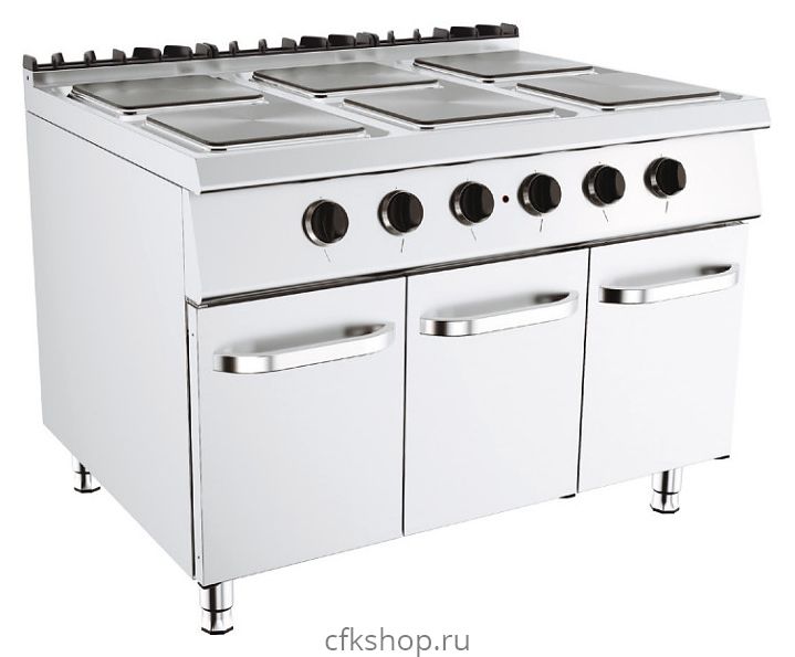 Электрическая плита Вулкан Лайт VP912962E-3D используется на предприятиях общественного питания и торговли отдельно или в составе тепловой линии Лайт 900 для приготовления широкого спектра блюд в наплитной посуде. Модель оснащена 6 варочными конфорками квадратной формы со ступенчатым контролем температуры, стендом с 3 сторон, 3 распашными дверьми и регулируемыми ножками. Корпус выполнен из нержавеющей стали, задняя решетка - из чугуна с эмалированным покрытием.