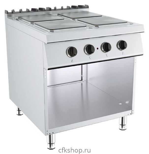Электрическая плита Вулкан Лайт VP98922E-W используется на предприятиях общественного питания и торговли отдельно или в составе тепловой линии Лайт 900 для приготовления широкого спектра блюд в наплитной посуде. Модель оснащена 4 варочными конфорками квадратной формы со ступенчатым контролем температуры, стендом с 3 сторон и регулируемыми ножками. Корпус выполнен из нержавеющей стали, задняя решетка - из чугуна с эмалированным покрытием.
