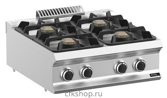 Газовая плита Apach Chef Line GLRRG77P серии 700 предназначена для приготовления различных блюд из мяса, птицы, рыбы и овощей в наплитной посуде на предприятиях общественного питания и торговли. Модель оснащена 4 съемными конфорками. Корпус выполнен из нержавеющей стали AISI 304 толщиной 1,5 мм, конфорки - из высокопрочного чугуна.