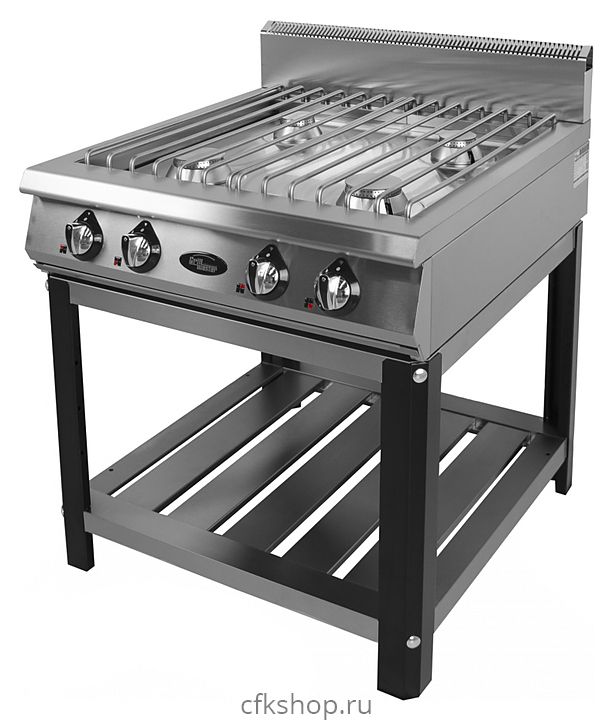 Газовая плита Grill Master Ф4ПГ/800 предназначена для приготовления широкого спектра блюд на предприятиях общественного питания и торговли. Модель оснащена ручками подачи газа нового дизайна и большего диаметра с удобным хватом и стендом с нейтральной решетчатой полкой. Корпус, разборная подставка и система решеток выполнены из нержавеющей стали.