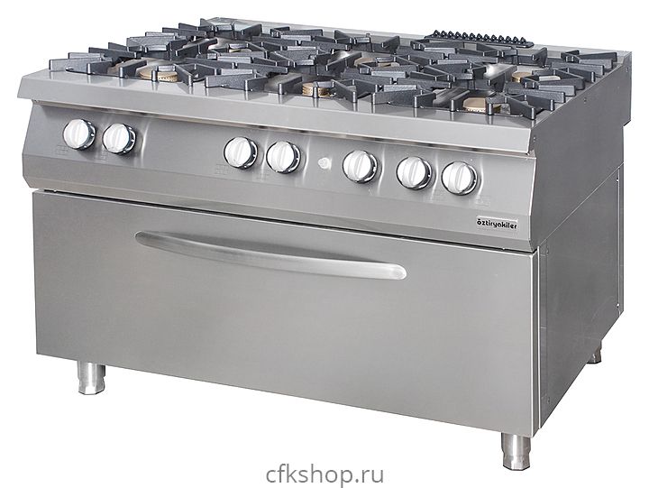 Газовая плита OZTI OSOGF OSOGF 12090 S предназначена для приготовления широкого спектра блюд в наплитной посуде и выпечки мелкоштучных кулинарных изделий на предприятиях общественного питания, а также в производственных цехах, деятельность которых связана с выпуском гастрономических товаров. Камера духового шкафа и дверца выполнены из нержавеющей стали AISI 430, горелки - из латуни, решетки - из полуглянцевого кислотностойкого чугуна.