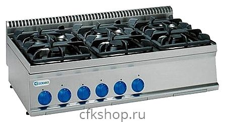 Газовая плита Tecnoinox PC105G7 серии Tecno70 предназначена для приготовления первых, вторых, третьих блюд в наплитной посуде на предприятиях общественного питания и торговли. Модель оснащена горелками с двойной короной. Корпус изготовлен из нержавеющей стали AISI 304, газовые горелки - из эмалированного чугуна. Оборудование может быть расположено на подставке у стены или как центральный остров.
