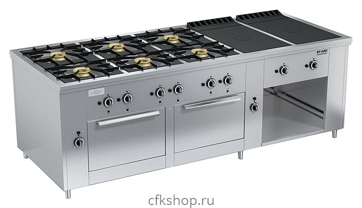 Газовая плита Вулкан ПРГ-IIA-10-2 2ДШ Maxi предназначена для приготовления первых, вторых и третьих блюд в наплитной посуде, выпечки хлебобулочных и кондитерских изделий на предприятиях общественного питания и торговли. Модель оснащена 6 секционными и 2 сплошными горелками, 2 духовыми шкафами, газ-контролем, пьезорозжигом и запальной горелкой. Корпус выполнен из нержавеющей стали.