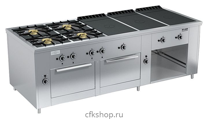 Газовая плита Вулкан ПРГ-IIA-10-3 2ДШ Maxi предназначена для приготовления первых, вторых и третьих блюд в наплитной посуде, выпечки хлебобулочных и кондитерских изделий на предприятиях общественного питания и торговли. Модель оснащена 4 секционными и 3 сплошными горелками, 2 духовыми шкафами, газ-контролем, пьезорозжигом и запальной горелкой. Корпус выполнен из нержавеющей стали.