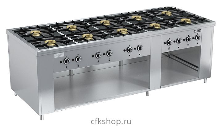 Газовая плита Вулкан ПРГ-IIA-10 Maxi предназначена для приготовления первых, вторых и третьих блюд в наплитной посуде на предприятиях общественного питания и торговли. Модель оснащена газ-контролем, пьезорозжигом и пилотной горелкой. Корпус выполнен из нержавеющей стали, решетка - из чугуна, газовые горелки - из латуни.