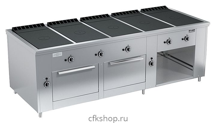 Газовая плита Вулкан ПРГ-IIA-5С 2ДШ Maxi предназначена для приготовления первых, вторых и третьих блюд в наплитной посуде на предприятиях общественного питания и торговли. Модель оснащена 2 духовыми шкафами, газ-контролем и пьезорозжигом. Корпус выполнен из нержавеющей стали, рабочая поверхность - из чугуна.