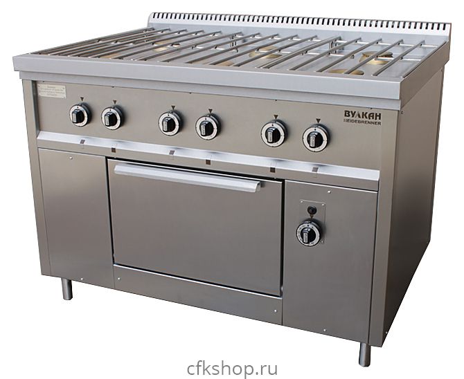 Газовая плита Вулкан ПРГ-IIA-6М ДШ Standart серия 900 предназначена для приготовления первых, вторых и третьих блюд в наплитной посуде, выпечки хлебобулочных и кондитерских изделий на предприятиях общественного питания и торговли. Модель оснащена газ-контролем и пьезорозжигом горелки духового шкафа. Корпус и решетки выполнены из нержавеющей стали.