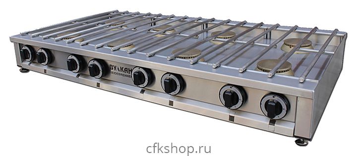 Газовая плита Вулкан ПРГ-IIA-8М Slim предназначена для приготовления первых, вторых и третьих блюд в наплитной посуде на предприятиях общественного питания и торговли. Модель оснащена газ-контролем. Корпус и решетки выполнены из нержавеющей стали, газовые горелки - из латуни.