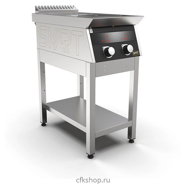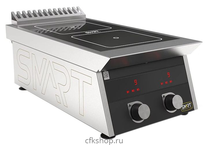 Индукционная плита SMART INDUCTION C72-3B C72-3B 220В предназначена для приготовления и быстрого разогрева блюд на предприятиях общественного питания и торговли. Модель оснащена электронно-механической панелью управления с индикацией, съемным жировым фильтром для отделения жира и влаги от поступающего внутрь аппарата воздуха и регулируемыми по высоте ножками. Корпус, столешница и воздуховод выполнены из нержавеющей стали AISI430, рабочая поверхность - из стеклокерамики, передняя панель имеет стойкое полимерное покрытие черного цвета.