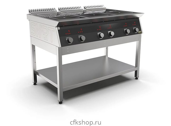 Индукционная плита SMART INDUCTION C76-5B предназначена для приготовления и быстрого разогрева блюд на предприятиях общественного питания и торговли. Модель оснащена электронно-механической панелью управления с индикацией, съемным жировым фильтром для отделения жира и влаги от поступающего внутрь аппарата воздуха и регулируемыми по высоте ножками. Корпус, столешница и воздуховод выполнены из нержавеющей стали AISI430, рабочая поверхность - из стеклокерамики, передняя панель имеет стойкое полимерное покрытие черного цвета.