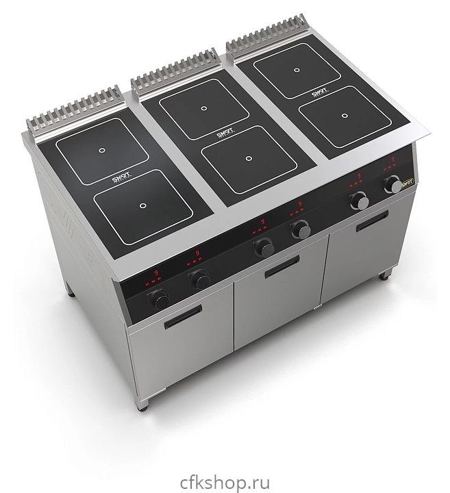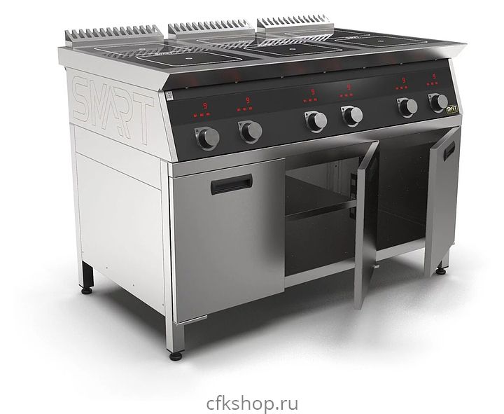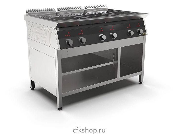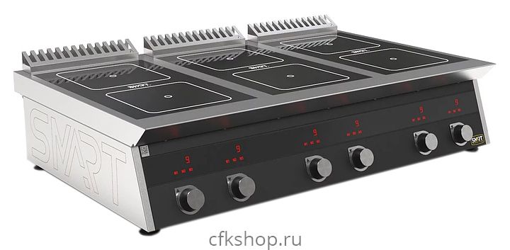 Индукционная плита SMART INDUCTION C96-35B предназначена для приготовления и быстрого разогрева блюд на предприятиях общественного питания и торговли. Модель оснащена электронно-механической панелью управления с индикацией, съемным жировым фильтром для отделения жира и влаги от поступающего внутрь аппарата воздуха и регулируемыми по высоте ножками. Корпус, столешница и воздуховод выполнены из нержавеющей стали AISI430, рабочая поверхность - из стеклокерамики, передняя панель имеет стойкое полимерное покрытие черного цвета.