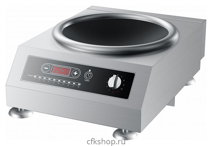 Индукционная настольная плита Enigma SL-G35-KA18 предназначена для приготовления и быстрого разогрева блюд китайской кухни на предприятиях общественного питания и торговли. Модель оснащена стеклокерамической конфоркой для ВОКа, кнопочной панелью управления с активным джойстиком и LED дисплеем. Корпус выполнен из нержавеющей стали.