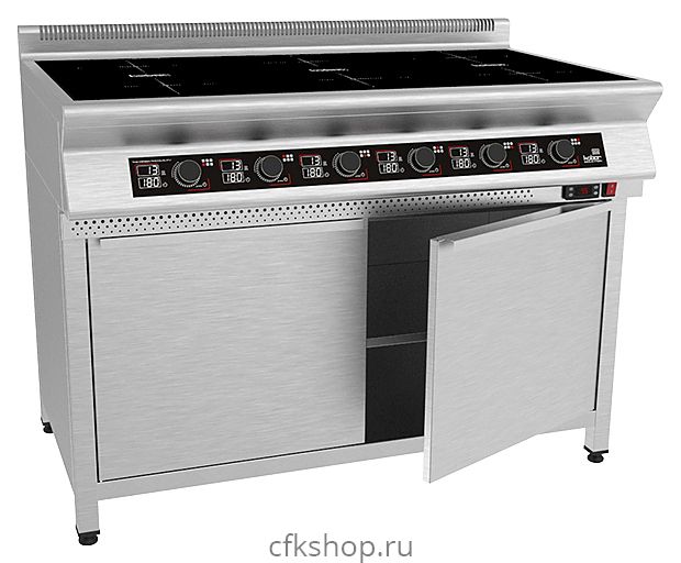 Индукционная плита Кобор I7-6SТ серии 700 предназначена для приготовления различных блюд в наплитной посуде на предприятиях общественного питания и торговли. Нагрев поверхности осуществляется почти мгновенно, а выделяемое тепло генерируется только на посуде, сама же плита нагревается незначительно, что позволяет избежать ожогов и потери тепла. Корпус выполнен из нержавеющей стали AISI 304, варочная панель - из монолитной высокопрочной стеклокерамики.