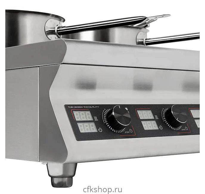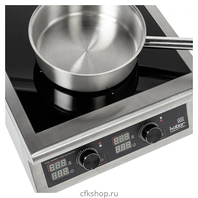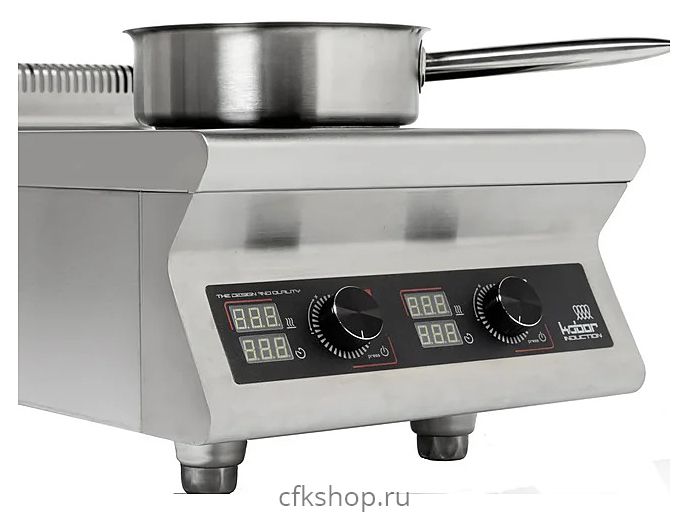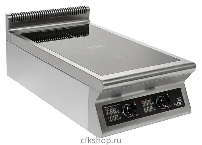 Индукционная плита Кобор I9-2T серии 900 предназначена для приготовления различных блюд в наплитной посуде на предприятиях общественного питания и торговли. Нагрев поверхности осуществляется почти мгновенно, а выделяемое тепло генерируется только на посуде, сама же плита нагревается незначительно, что позволяет избежать ожогов и потери тепла. Корпус выполнен из нержавеющей стали AISI 304, варочная панель - из монолитной высокопрочной стеклокерамики.