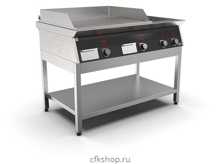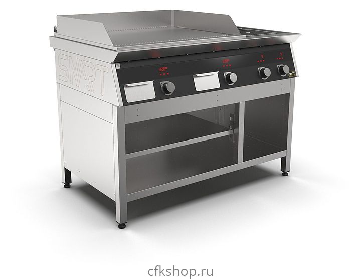 Комбинированная индукционная плита SMART INDUCTION K76-35RRKB предназначена для приготовления и быстрого разогрева блюд на предприятиях общественного питания и торговли. Модель оснащена электронно-механической панелью управления с цифровой индикацией и сенсорными кнопками, 3 съемными жировыми фильтрами для отделения жира и влаги от поступающего внутрь аппарата воздуха, 2 ящиками для сбора жира и регулируемыми по высоте ножками. Корпус и столешница выполнены из нержавеющей стали AISI430, рабочая поверхность плиты - из стеклокерамики, рабочая поверхность гриля - из нержавеющей стали, передняя панель имеет стойкое полимерное покрытие черного цвета.