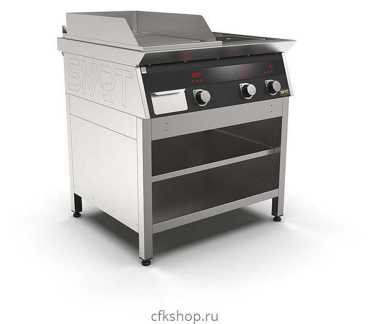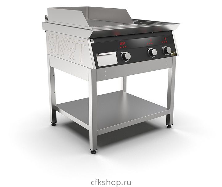 Комбинированная индукционная плита SMART INDUCTION K94-35RKB предназначена для приготовления и быстрого разогрева блюд на предприятиях общественного питания и торговли. Модель оснащена электронно-механической панелью управления с цифровой индикацией и сенсорными кнопками, 2 съемными жировыми фильтрами для отделения жира и влаги от поступающего внутрь аппарата воздуха, ящиком для сбора жира и регулируемыми по высоте ножками. Корпус и столешница выполнены из нержавеющей стали AISI430, рабочая поверхность плиты - из стеклокерамики, рабочая поверхность гриля - из нержавеющей стали, передняя панель имеет стойкое полимерное покрытие черного цвета.