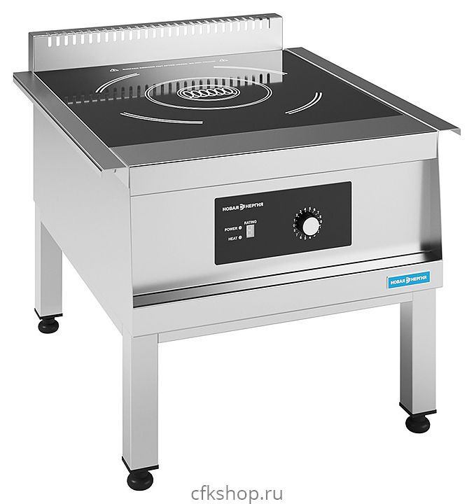 Индукционная плита Новая Энергия ПЭИ-1К предназначена для приготовления различных блюд в наплитной посуде на предприятиях общественного питания и торговли. Модель оснащена боковыми планками для обеспечения вентиляции и регулируемыми опорами. Корпус выполнен из нержавеющей стали марки AISI 430 толщиной 1,2 мм, рабочая поверхность- из закаленного стекла 8 мм, ножки - из нержавеющей трубы 40х40 мм.