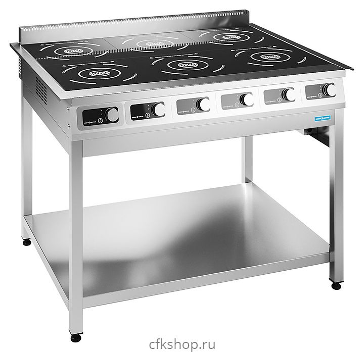 Индукционная плита Новая Энергия ПЭИ-6/G2 предназначена для приготовления различных блюд в наплитной посуде на предприятиях общественного питания и торговли. Модель оснащена боковыми планками для обеспечения вентиляции и регулируемыми опорами. Корпус выполнен из нержавеющей стали марки AISI 430 толщиной 1,2 мм, рабочая поверхность- из закаленного стекла 8 мм, ножки - из нержавеющей трубы 40х40 мм.