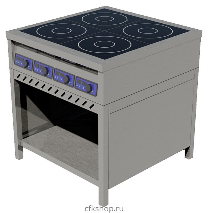 Индукционная плита ЦМИ ПИ-4Т предназначена для приготовления различных блюд в наплитной посуде на предприятиях общественного питания и торговли. Нагрев рабочей поверхности осуществляется моментально, вследствие чего затрачивается меньшее количество электроэнергии. Корпус выполнен из нержавеющей стали, сплошная полка - из нержавеющего листа AISI 430 толщиной 0,8 мм, ножки каркаса - из нержавеющей трубы 40х40х1,5 AISI 430.