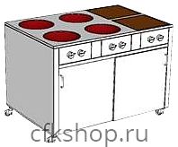 Мобильная комбинированная плита Heidebrenner ETK-I-FW 742638 предназначена для приготовления первых, вторых и третьих блюд в наплитной посуде на предприятиях общественного питания и торговли. Модель оснащена 2 дверцами-купе, 4 конфорками WOK и 2 индукционными конфорками, плавной регулировкой энергии, быстрым нагревом и автоматическим определением посуды, при котором при отсутствии посуды конфорка автоматически отключается.